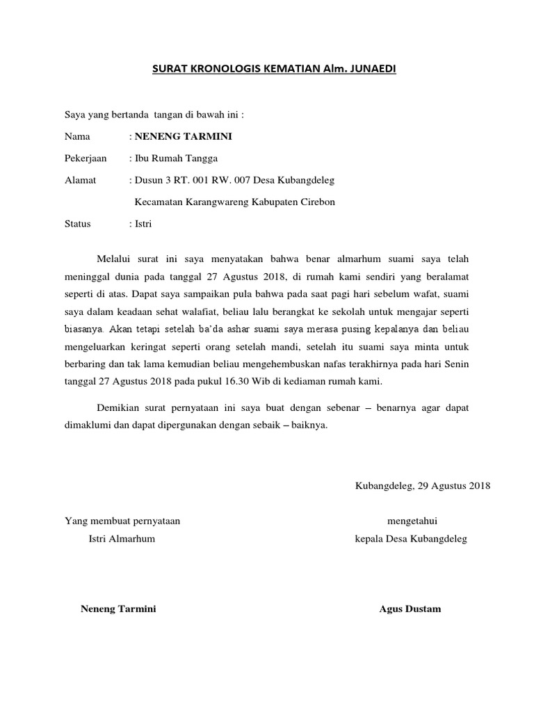 Contoh Surat Kronologis Kematian Contoh Surat