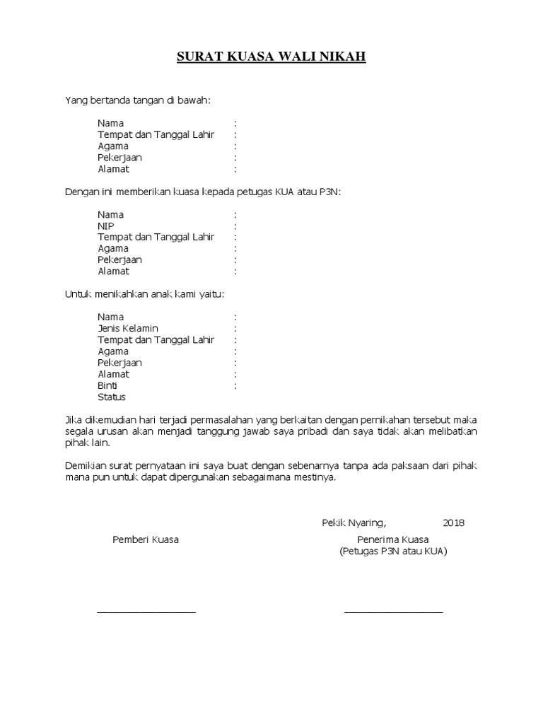 Contoh Surat Kuasa Wali Nikah Kepada Wali Hakim Kumpulan Surat Penting