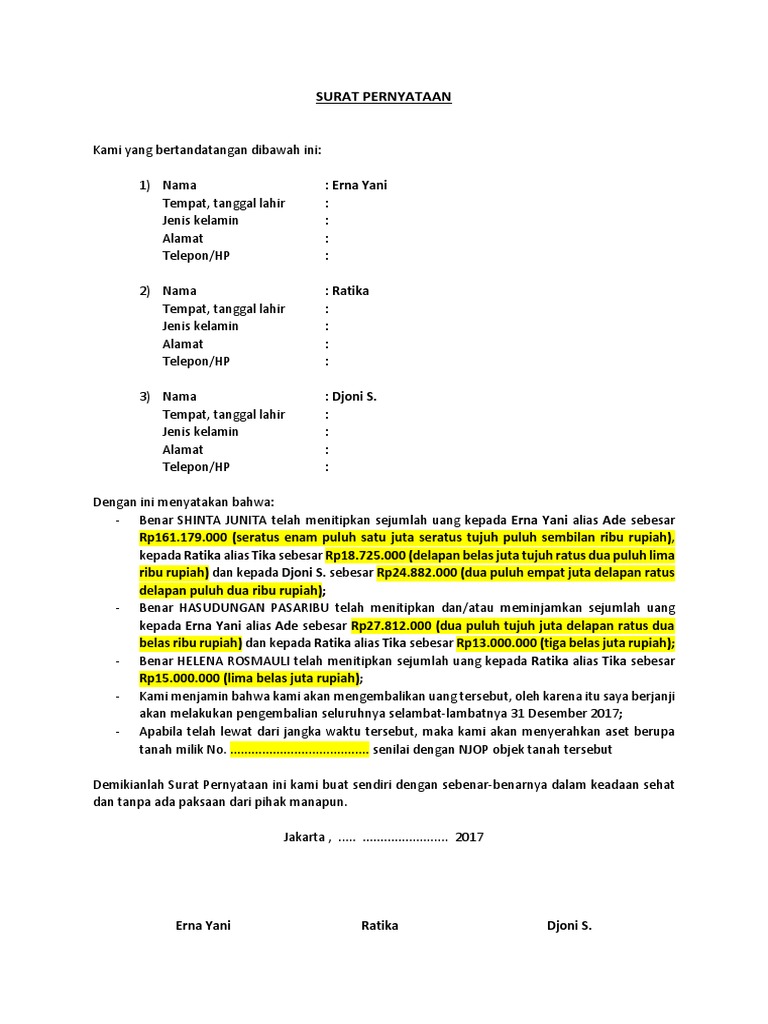 Download Contoh Surat Pernyataan Perjanjian Pengembalian Uang